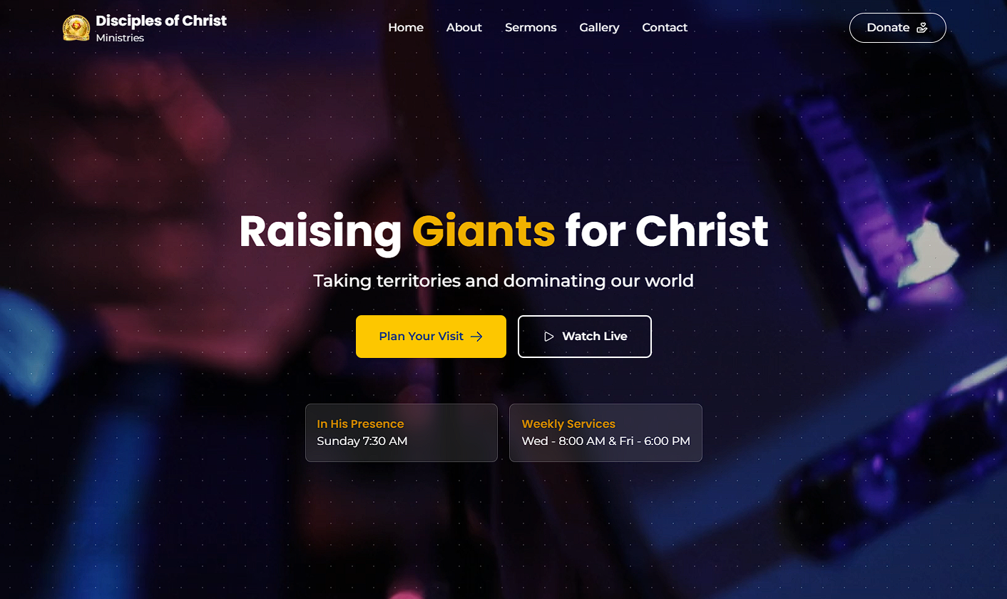 WebsiteA church website for DocM, presenting ministry vision, sermons, events, and a clear pathway for members and visitors to connect.